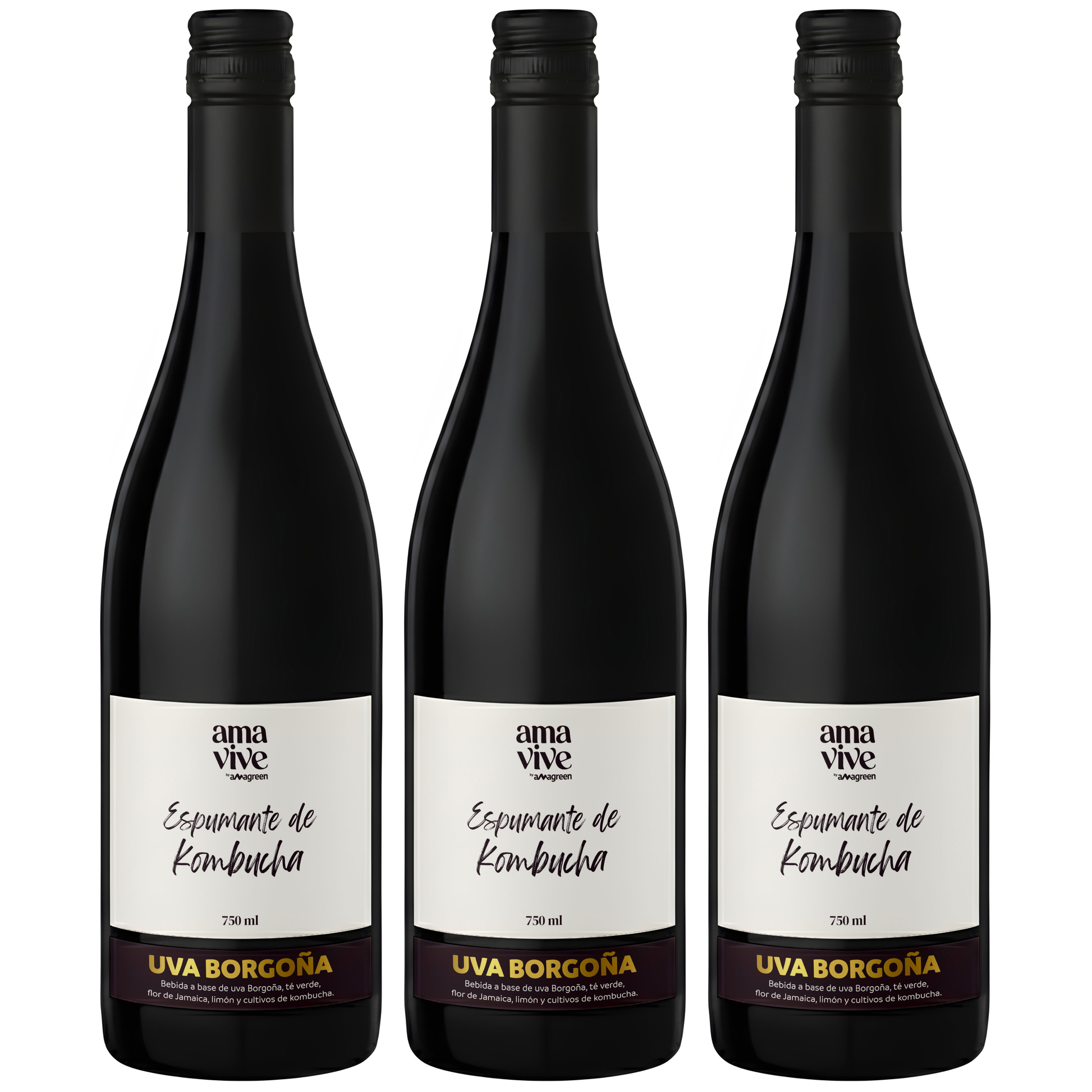 Pack x 3 Espumantes de Kombucha Uva Borgoña sin alcohol Amavive 750ml